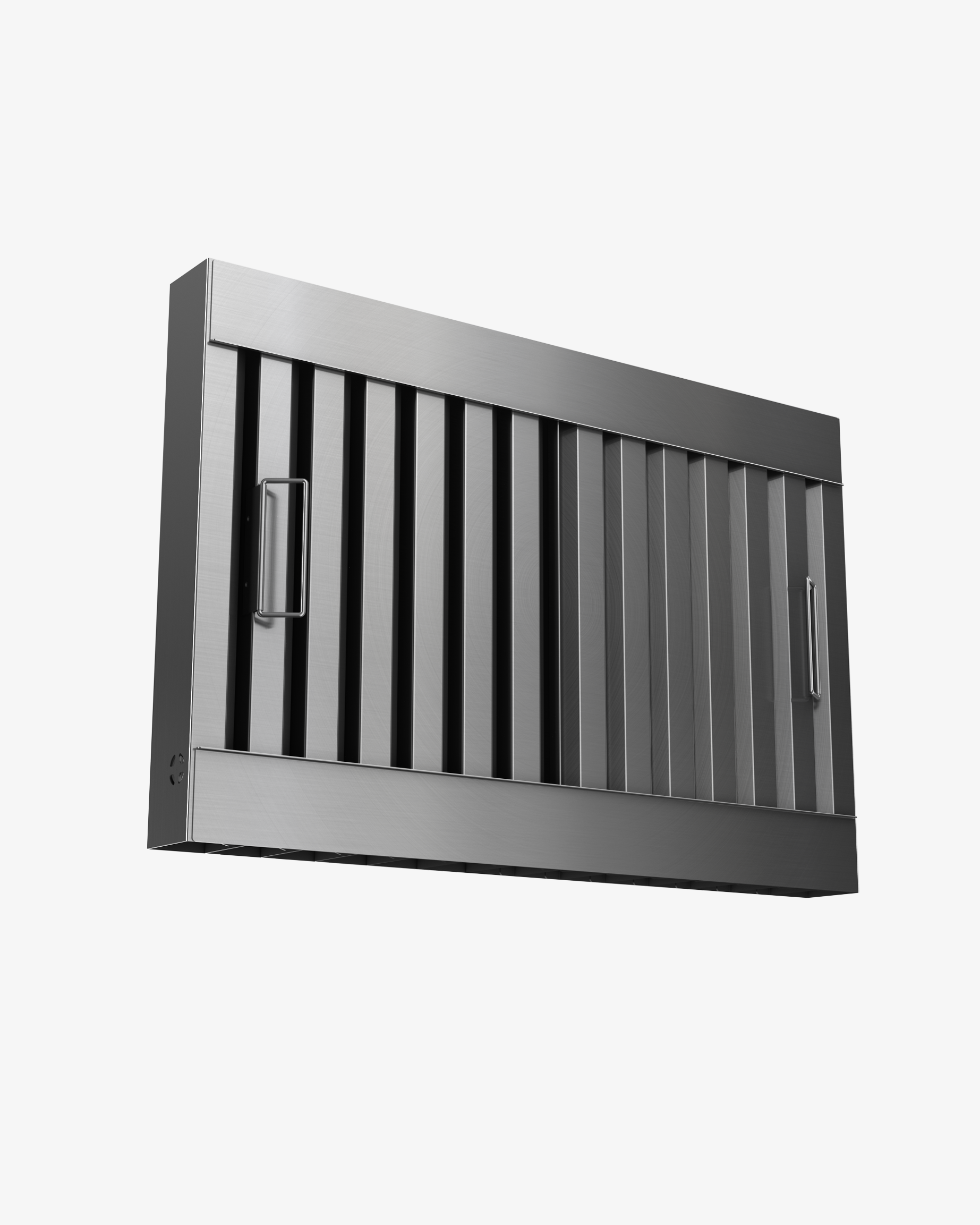 Casemiro Cyclone is a standard choice in Tovenco ventilation ceilings and is also used in a wide range of kitchen hoods. Equipped with cyclone filter F – 500×330, Casemiro offers efficient grease separation while maintaining airflow and stable pressure drop over time.